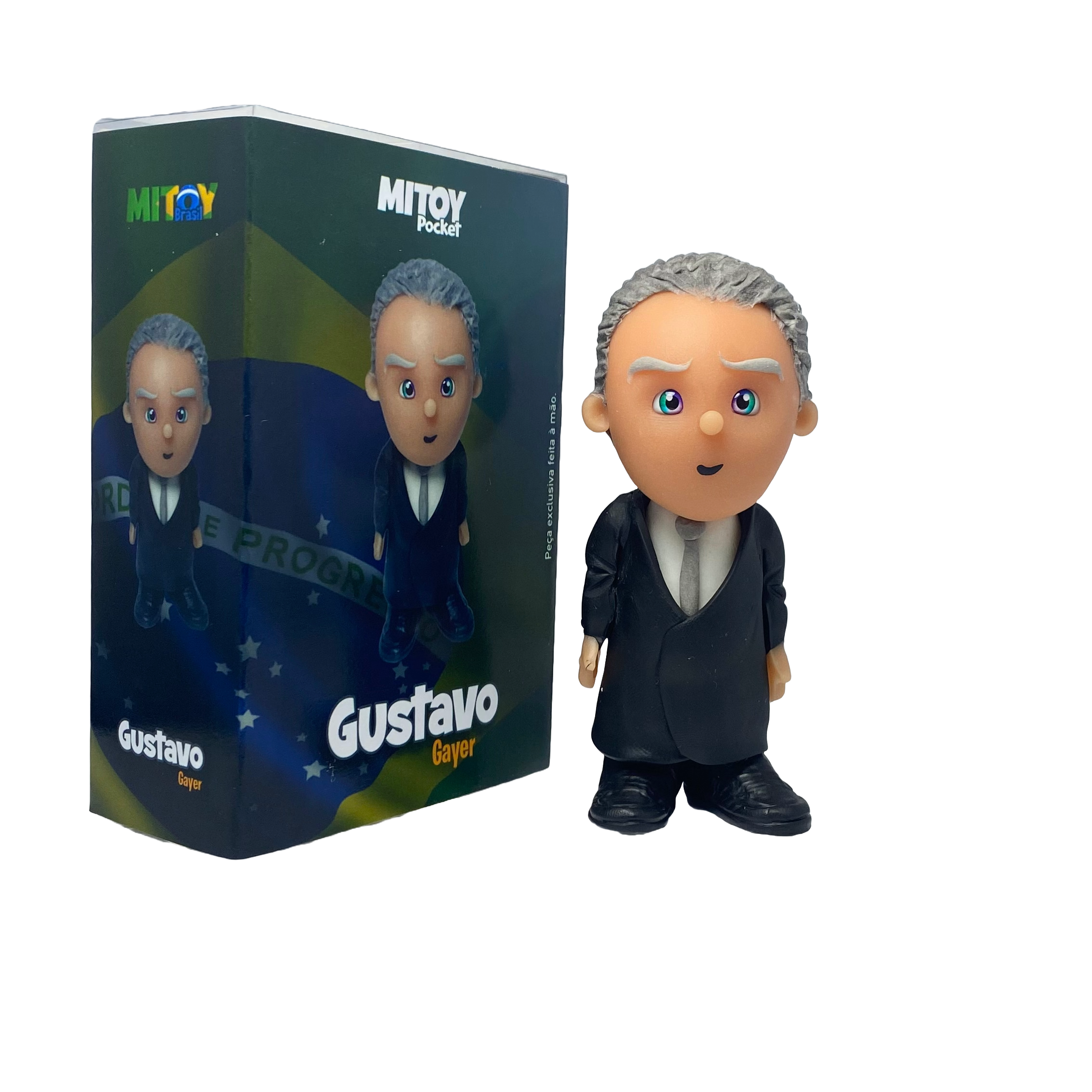 Boneco em Biscuit (Porcelana fria) do deputado Gustavo Gayer, com verniz, durabilidade e resistência.