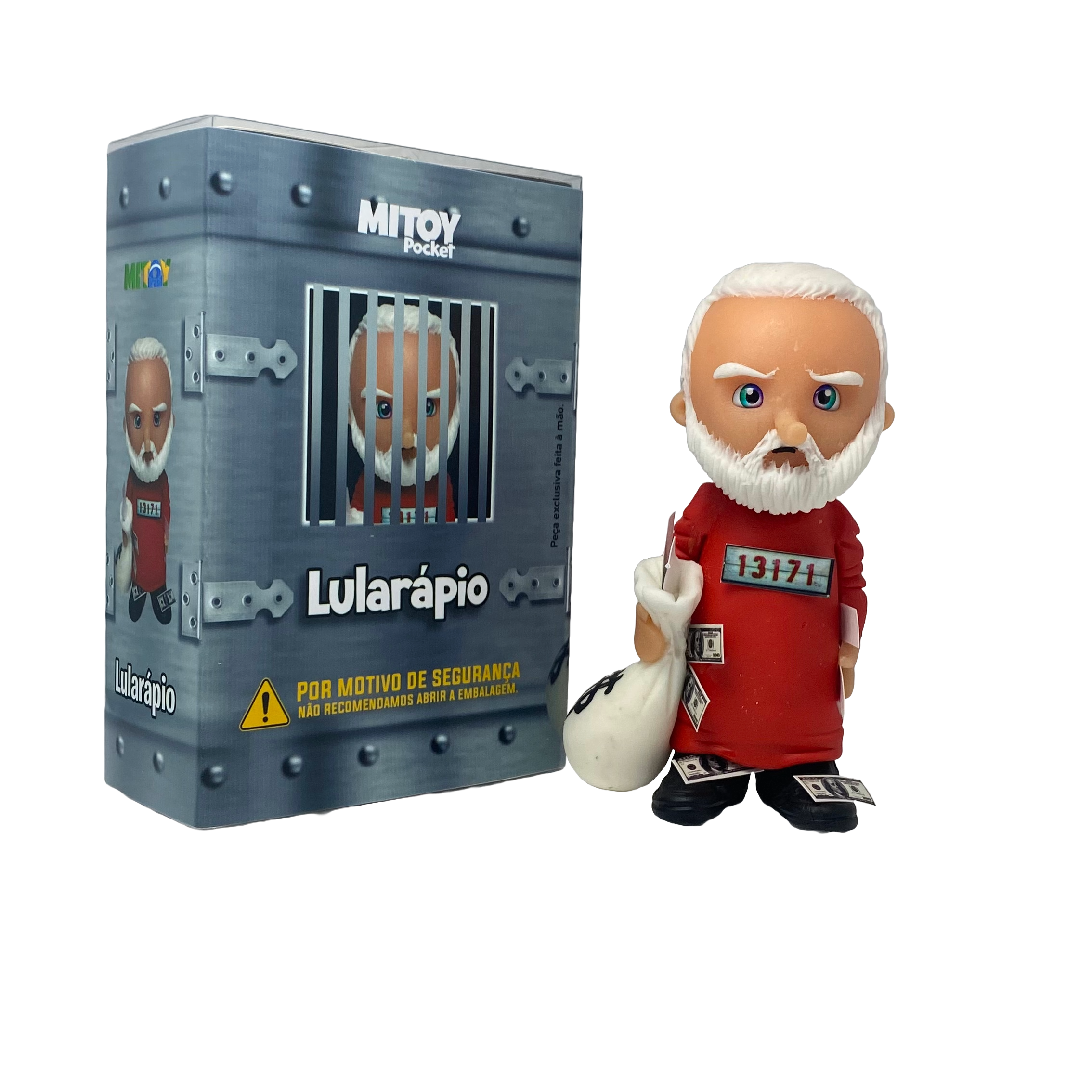 Boneco em Biscuit (Porcelana fria) do Lula vestido de presidiário, com verniz, durabilidade e resistência.
