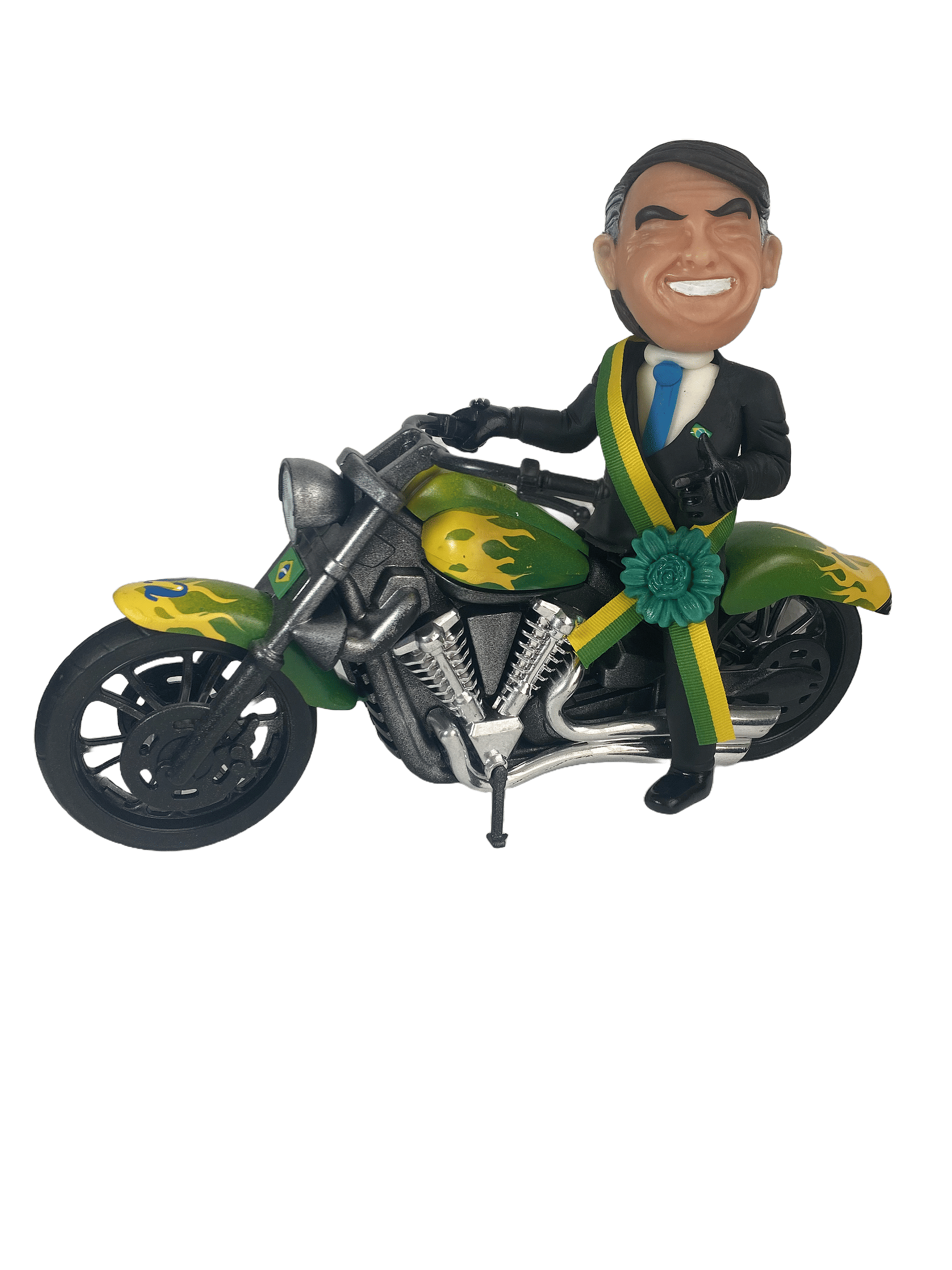 Boneco em Biscuit (Porcelana fria) do presidente Jair Bolsonaro na moto.